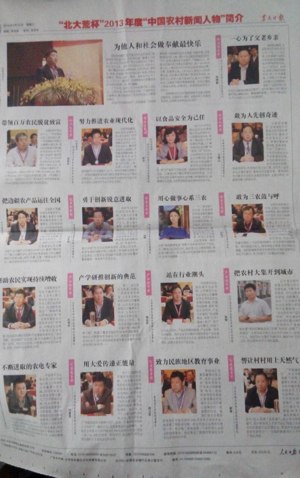 此次“中國農(nóng)村新聞人物”大型公益評選活動(dòng)由農(nóng)民日報(bào)牽頭,聯(lián)合中央多家新聞單位共同組織,評選產(chǎn)生了為我國“三農(nóng)”事業(yè)領(lǐng)域做出杰出貢獻(xiàn)的18名代表人物。