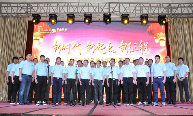 大會(huì)以播放短片的形式回顧了公司一年來(lái)的各項(xiàng)業(yè)務(wù)發(fā)展情況和取得的成績(jī)。副總經(jīng)理邰志東代表公司首先向全體人員致辭,而后在察右中旗烏蘭牧騎《時(shí)代贊歌》、《守望相助》的歌舞里拉開序幕。頒獎(jiǎng)環(huán)節(jié),由22名優(yōu)秀行政管理人員、生產(chǎn)管理人員、生產(chǎn)服務(wù)人員、銷售人員和14個(gè)最佳效益獎(jiǎng)、最佳質(zhì)量獎(jiǎng)、最佳合作伙伴獎(jiǎng)、優(yōu)秀團(tuán)隊(duì)獎(jiǎng)、董事長(zhǎng)特別獎(jiǎng)的獲獎(jiǎng)代表上臺(tái)接受了公司各級(jí)領(lǐng)導(dǎo)的頒獎(jiǎng)和祝賀。同時(shí),原種生產(chǎn)管理中心、脫毒組培中心、原種生產(chǎn)管理中心、物流倉(cāng)儲(chǔ)中心用《民豐之歌》和《民豐我們的家》兩首大合唱表達(dá)了對(duì)公司的贊美和熱愛(ài)之情。最后,大會(huì)在烏蘭牧騎《在你偉大的懷抱里》的舞蹈里走向高潮。表彰大會(huì)和文藝演出穿插進(jìn)行,環(huán)環(huán)相扣,方式新穎,得到了全體員工的一致好評(píng),也為即將開始的新春生產(chǎn)種植工作注入了活力,帶來(lái)了動(dòng)力。